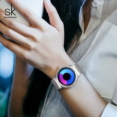 Ovaj jeftin originalni ženski sat okruglog oblika izveden je u stilu minimalizma. Najbolji model koji podsjeća na dizajn njemačkog dizajnera Roberta Dhabija. Kao i njegov sat, poznat pod markom Ziiiro, ne postoje ni ruke ni oznake. Umjesto toga, LED svijetli na rubu brojčanika, što pokazuje vrijeme. AliExpress pribor može se naručiti u 4 dizajna. Svaka opcija je različitih boja dial. Postoje satovi s drvenim graviranjem, nema uzorka. Što god odaberete - pozornost drugih je osigurana.