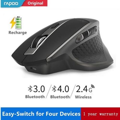 Bežični miš iz tvrtke Rapoo AliExpress privlači svojom sličnošću karakteristikama skupljeg Logitech MX Master manipulatora. Stvoren je za desničare s prilično velikom rukom. Oblik je asimetričan. Sve tipke su na pravim mjestima, nema potrebe za pretraživanjem. Pristup kotačiću je izvrstan. Recenzije tvrde da se miš može koristiti kao igra - igrači su zadovoljni brzinom i točnošću odgovora. No, moramo imati na umu da ovo nije vodeći model, nego energičan osrednji, tako da ovo nije najbolji manipulator za cyber sport.