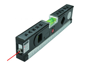 Kompaktan, jeftin i vrlo višenamjenski laser. Uređaj uključuje: dvostrani ravnalo (15 cm / 6 stopa), metar trake od 2,5 metra, tri klasične razine mjehurića (vodoravno, okomito, 45 stupnjeva) i sam laser koji radi u tri načina (vodoravno, okomito, križ na 90 stupnjeva) ) .. Uređaj je koristan za različite radove (koji nisu posebno kritični za točnost), na primjer, kada se vješaju police i slike na zidu, postavljaju strehe, polažu pločice, popravljaju itd.