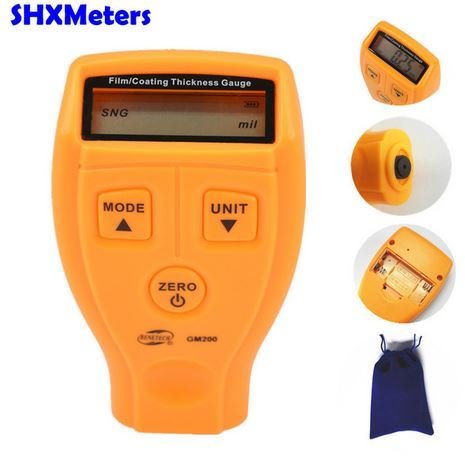 Uređaj se može vidjeti kod različitih proizvođača pod nazivom GM200 ili RM200. Namijenjen je za određivanje debljine premaza boje na magnetskim materijalima. Na aluminij ne radi. Model ima tri gumba - uključen, odabire način i vrstu mjerenja. Napaja se s 2 AAA baterije. Za kalibraciju, prodavatelj s "AliExpress" šalje kalibracijsku podlošku.