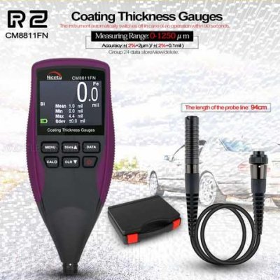 Uređaj je uređaj za određivanje debljine premaza boje na magnetskim i nemagnetskim metalima. Na magnetskim materijalima rezultat je trenutačan, pri radu s aluminijem morate pričekati nekoliko sekundi. Model koristi princip magnetske indukcije i efekta vrtložnih struja. Mjeri debljinu u mikronima, mm i mikrona. Raspon: 0-1300 mikrona. Točnost: 1 mikron.