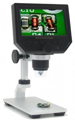 Slične modele nazvane 600G proizvode različiti kineski proizvođači. Ali većina prodaje i recenzije na AliExpressu imaju elektronski mikroskop od GAOSUO-a. Usprkos niskoj cijeni, uređaj je opremljen ekranom dijagonale 4,3 inča. Njegov je odgovor trenutan, što je vrlo dobro za lemljenje. Postoje tipke za podešavanje fokusa i pozadinskog osvjetljenja, postavljanje načina snimanja (fotografija ili video). Slika nije okrenuta naopako, čak iu načinu maksimalnog zumiranja.