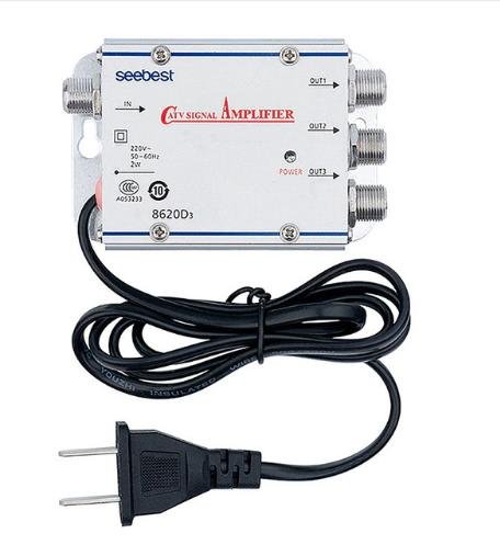 Najsnažnije pojačalo antene koje može raditi na maksimalnoj udaljenosti od izvora. Ovo više nije jednostavna kutija nepoznate svrhe, već punopravni uređaj visoke tehnologije. Pojačalo je montirano na zid i ima mogućnost spajanja izravno na tri televizora. Pogodna lokacija priključnih utičnica je još jedna prednost. Mjesto povezivanja antene je s jedne strane, a izlazi na televizoru s druge strane.
