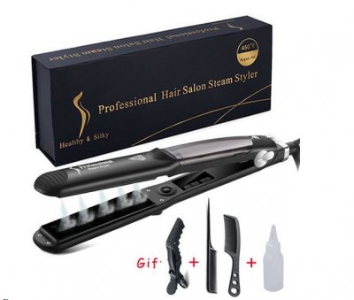 Grijaće ploče srednje širine, prikladne za gustu kosu. Pinceta je dobro zatvorena, bez praznina. Za udobnije pramenove prianjanja osiguran je odvojivi češalj. Ispravljač se odmah zagrijava. Volumen spremnika za vodu je 40 ml. Traje dugo. Kosa ne isušuje kosu, kovrče nisu elektrificirane. Mnogi kupci vjeruju da je to najpouzdaniji proizvod na AliExpress-u za odgovarajuću cijenu.