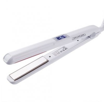 Ploče su prekrivene keramikom obloženom turmalinom. Brzo se zagrijavaju. Postoje tri termalna načina rada koji vam omogućuju stiliziranje kose različitih vrsta. Željezo se savršeno nosi s tankim niti i gustim kovrčama. Deklarirana ionizacijska funkcija.Važna prednost modela, korisnici također uzeti u obzir prisutnost zgodan zaslon koji pomaže da odaberete način grijanja. Proizvod se aktivno prodaje na AliExpress i prima najbolje recenzije i ocjene.