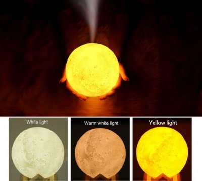 Takav ultrazvučni ovlaživač zraka najbolje je rješenje za one koji vole neobične stvari. Model prikazan u ocjeni nalikuje maloj kopiji Mjeseca. Čak su i krateri duplicirani, kao pravi zemaljski satelit. Možete ga naručiti na AliExpress sa ili bez drvenog stalka. Uređaj radi kao svjetiljka, ovlaživač i difuzor. Izgleda vrlo lijepo u interijeru, estetike će to cijeniti, a djeci će se svidjeti.