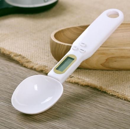 Za mjerenje male količine proizvoda potreban je takav mjerni alat u obliku žlice. Kao mjerilo ovdje se koristi plastična žlica, čije tijelo istovremeno obavlja funkciju zaslona i držača. Upravljanje se vrši gumiranim gumbima. Postoji funkcija automatskog isključivanja. Veličina žlice je 5x6,5 cm, a može težiti najviše 300 grama, s podjelom od 0,1 g. Mjerenja su vrlo točna.