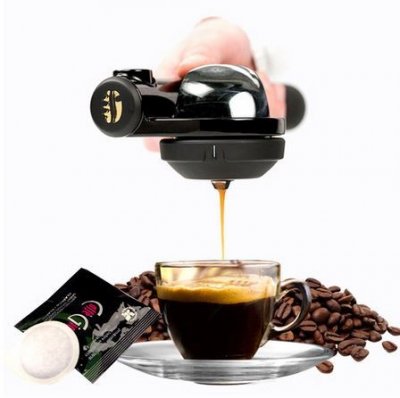 Neobična aparat za kavu za izradu ukusnog pića na terenu. Aparat za kavu može se nazvati samo uvjetno. Ona je u potpunosti ručna. Ne treba joj ni električna veza. Tlak u sustavu se stvara pomoću ručne pumpe. Mora se pumpati dok se igla ne približi crvenoj liniji. Zatim ulijte vruću vodu u poseban spremnik i napunite aparat kapsulom za kavu.