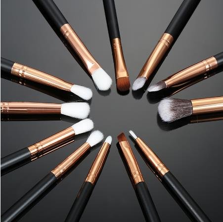 Ovaj set proizvodnih tvrtki LEARNEVER sadrži 12 četki. Svi su gusti, fleksibilni, ravnomjerno obrubljeni i izvrsni su za nanošenje sjena. Ovdje je hrpa najlon, a ručke su od drva. Osobito uspješan bio je beveled četka, s njom možete privući čak i najtanji, pa čak i strijela. Visoku kvalitetu instrumenata potvrđuju i fotografije šminke koja je priložena recenzijama.