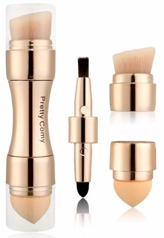 Nije potrebno ponijeti sa šminkanjem, ide na odmor. Ova mala četkica može uspješno zamijeniti cijeli set i zauzima vrlo malo prostora. Dužina alata je nešto veća od 5 cm kada se preklopi, težina je oko 100 grama. Ručka je izrađena od metala, najlonskog stupa. Na vrhu je velika četka, može se koristiti za pečenje rumenila i bronzer. Spužva, koja se nalazi na poleđini, idealna je za nanošenje tonske ili BB-kreme.