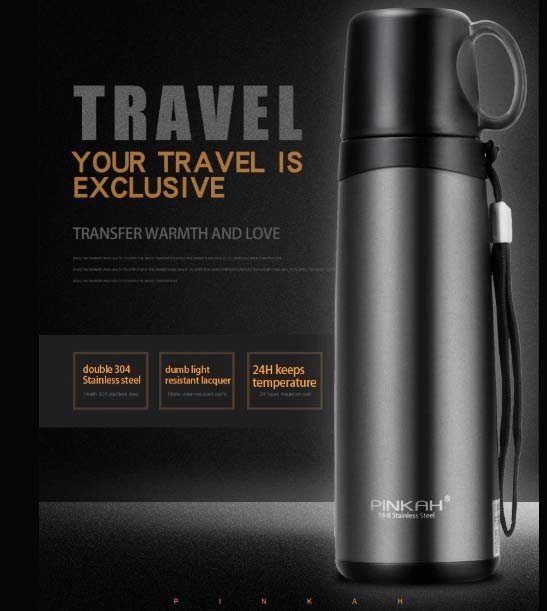 Termo-šalica od nehrđajućeg čelika s tikvicom od 500 ml. Udoban, prostran i pouzdan model koji je prikladan za vožnju biciklom, jog ili putovanja. Pogodno za tople i hladne napitke. Ovisno o temperaturi okoline, sprema piće od 6 do 12 sati.