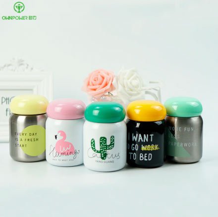 Mini-termos iz OWNPOWER volim i djecu i odrasle. Pogodan je za studente, djecu i ljude koji su navikli na kavu / čaj s njima na šetnju ili posao. Važan detalj - ova termos apsolutno ne curi. Možete ga nositi u svojoj torbi koliko god želite, pa čak ni kap pića neće curiti kroz poklopac. Unutarnja tikvica je izrađena od nehrđajućeg čelika. Za razliku od stakla, može izdržati bilo kakvo opterećenje. Vanjska žarulja je svijetla i elegantna, a dizajn se može odabrati.