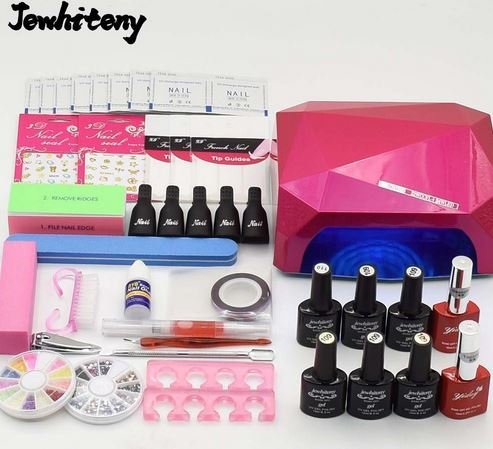 Svjetiljka je glavni alat u kompletu. To ovisi o tome koliko vremena ćete potrošiti na manikuru i koliko će biti dobar rezultat. Fluorescentne svjetiljke suhe gel gel dulje od LED. Prilično su velike veličine, što znači da mogu odmah osušiti lak na pet prstiju jedne ruke. Bolje je odabrati AliExpress setove s 36 W svjetiljkom. Vrijeme sušenja laka je oko 2 minute. Što je niža snaga žarulje, to će duže trajati za svaki sloj. Ove svjetiljke su jeftinije od hibridnih i LED.