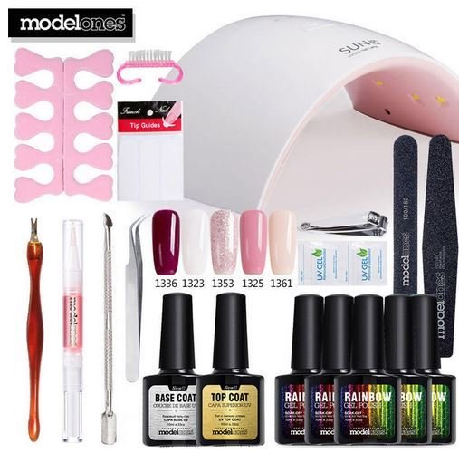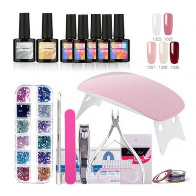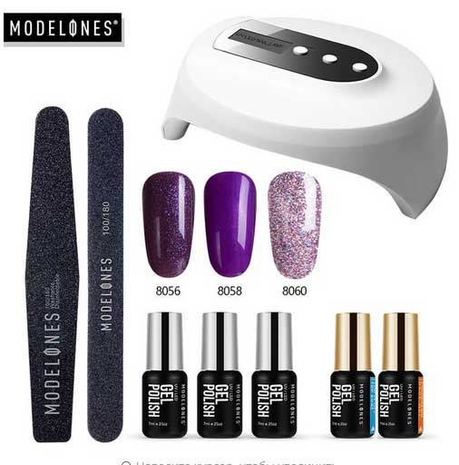 Vrlo pristojan skup koji će vam omogućiti provedbu najhrabrijih dizajnerskih odluka. Stupanj je toliko širok da je teško sve nabrojati. Kompaktna i prilično izdašna svjetiljka ovog seta omogućuje istodobno sušenje svih prstiju. Ovdje je ultraljubičasto, ali ako volite LED diode, možete naručiti komplet s ovom vrstom sušilice. Može ponuditi prodavatelju i hibridne svjetiljke.