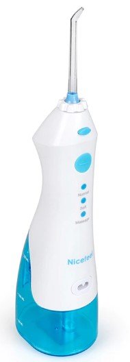 FC168 - uspješan model s ergonomskim dizajnom tvrtke Nicefeel. Ovo je izvrstan električni irigator s spremnikom od 600 ml, zbog svoje veličine može stati čak iu najmanjoj kupaonici. Tu je i lopatica za čišćenje jezika, ortodontski nastavak i uređaj za čišćenje parodontnih džepova. Tri klasična savjeta imaju oznake na ručki. Svi su dodaci pohranjeni ispod poklopca u gornjem dijelu kućišta za navodnjavanje.