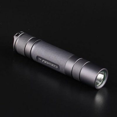 Konvoj u potpunosti opravdava utrošeni iznos: koriste se visokokvalitetni materijali, lemljenje je uredno, nema nikakvog zazora. Kada se sklopi, izgleda da je glava svjetiljke neodvojiva od glavnog dijela, iako je u stvarnosti uređaj lako rastavljen. Dioda se nalazi u sredini - to je velika rijetkost za baterijske svjetiljke s AliExpress, u kojima se često "seli". Objektiv ima zanimljiv premaz s nijansom koja ovisi o osvjetljenju. Napaja se svjetiljkom od litij-ionske baterije.