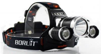 Glavna značajka BORUiT RJ-3000 bila je prisutnost UV osvjetljenja (valna duljina - 395 nm). Ima tri načina osvjetljenja: visoku bijelu svjetlost, nisku bijelu i ultraljubičastu. Kućište modela je vodootporno, neki dijelovi su izrađeni od aluminijske legure. Traka za glavu je elastična, lako je prilagoditi različitim veličinama. Svjetla se okreću za 90 °, što vam omogućuje usmjeravanje grede u pravom smjeru.