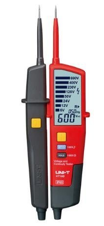 Vrijedno je spomenuti prijenosni voltmetar UNI-T UT18D, originalan u performansama i performansama. U montažnoj zgradi, koja se sastoji od dva segmenta, postavljene su sonde za mjerenje napona na stezaljkama električnih krugova. Svaki od segmenata napravljen je u obliku prikladne ručke i obojen u crno i crveno.