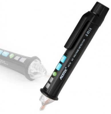 Dobar izbor za električare i druge stručnjake koji često rade s naponom. Gadget ima beskontaktnu tehnologiju koja vam omogućuje prepoznavanje podataka o prisutnosti napona, bez dodirivanja samih žica i time bez prekida njihove izolacije. Model ima izgled kemijske olovke s posebnom kopčom (za bolju fiksaciju u džepu), sastavljenu od visokokvalitetne plastike i opremljenu s dva načina osjetljivosti (prva određuje fazu / 0, a druga je namijenjena traženju skrivenog ožičenja). Također možete prilagoditi zaslon (zvuk ili svjetlo), a pri slabom osvjetljenju koristiti svjetiljku.