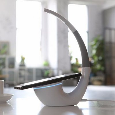 Platforma za pametni telefon okružena je silikonskim prstenom kako bi se spriječilo pomicanje gadgeta. Žarulja je spojena na izvor napajanja putem mikro USB konektora.Početak punjenja označen je svjetlom u obliku plavog prstena, svjetlo je difuzno, meko. Kućište također ima USB rupu za normalno punjenje. Ovaj uređaj iz Nillkin je popularan i zaslužuje svoje mjesto na ljestvici najboljih modela s AliEkspress. Jedini negativ je mali razmak u području mikro USB konektora.