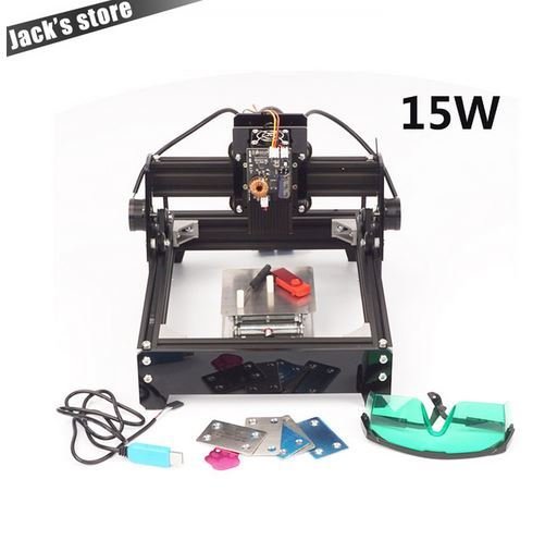 Graver s dovoljno snažnim laserom za obradu drveta, metalne legure, akril, karton i druge materijale. Ima dobru brzinu i najbolju kvalitetu izrade. Stroj se lako postavlja. Čak i novak će se nositi s tim zadatkom. Okvir je izdržljiv, aluminijski i metalni dijelovi visoke kvalitete. Neki plastični predmeti ispisuju se na 3D pisaču. Radno područje - 14x20 cm Prodavatelj softvera s AliExpress šalje na flash pogon. Nema problema s tim.