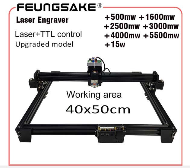 PU uređaj s proširivim radnim područjem. Maksimalna površina je povećana na 100x100 cm. Sa Aliexpress, stroj dolazi u nekoliko verzija. Najjeftiniji modeli imaju snagu laserske zrake od 500 mW, a strojevi za graviranje s kapacitetom od 1.600 do 5.500 mW i 15 W koštat će više. Prodavatelj šalje upute i softver putem e-maila ili ih stavlja u paket zajedno s uređajem, prethodno ga je snimio na USB flash pogon.