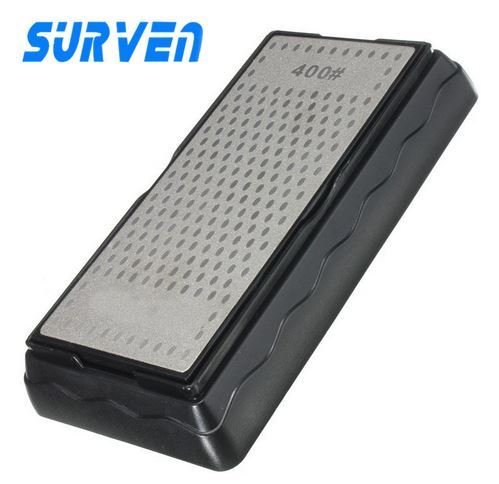SURVEN šiljilo - dijamantni brusni kamen s velikim područjem u praktičnom stalku. Njegova posebnost su ne-klizni jastučići na kućištu. Zahvaljujući njima, postupak izoštravanja je pojednostavljen, čak i početnici mogu to podnijeti. Oni koji imaju iskustva u rukovanju kamenjem mogu za nekoliko minuta napraviti oštar rub noževa, škare, lopate, motike i sjekire. Za to postoje dvije vrste abrazivnih površina s veličinama zrna 1000 i 400.
