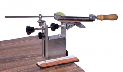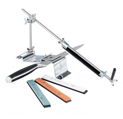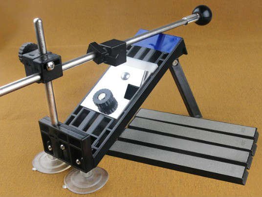 Oštrilice iz ove kategorije smatraju se najpogodnijim i najučinkovitijim, jer u njima možete postaviti bilo koji kut, počevši od 10 stupnjeva. Sustavi za oštrenje su prikladni za obradu reznih rubova različitih oblika. Glavna prednost takvih uređaja je poštivanje oštrice. Pri tome se uklanja mali sloj metala, što se ne može postići uporabom električnih i mehaničkih brusilica za provlačenje.