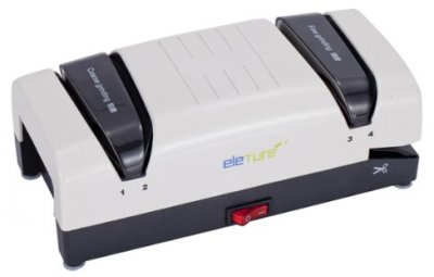 Eleture Saim Fsda - Automatsko električno oštrenje noževa. Tijelo je izrađeno od kvalitetne plastike bez mirisa, možete odabrati crno-bijeli ili bijeli i ružičasti dizajn. Uređaj je idealan za oštrenje noževa, škare i odvijača. Za to postoje 6 utora, što vam omogućuje da učinite reznu plohu savršeno ravnom. Snaga stroja u 60 vata je više nego dovoljna za brzi rad. Dodatna prednost je da se u slučaju pregrijavanja (70 stupnjeva i više) aktivira automatska zaštita koja ne dopušta da motor gori.