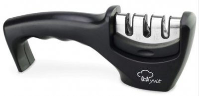 Taidea T1202 - kvalitetna stvar koja će biti relevantna ne samo u kuhinji, već iu restoranu. Ima ergonomski dizajn, udobno prianjanje i dobro osmišljen sustav rada. Brusno kamenje je napravljeno u obliku rotirajućih kotača. U kućištu su tri otvora (2 s dijamantnim premazom, 1 keramički). Koriste se za dosljedno zamjenjivanje grubih abraziva tanjim. To vam omogućuje postizanje bolje oštrine noža, rezna površina je glatka, bez oštećenja.