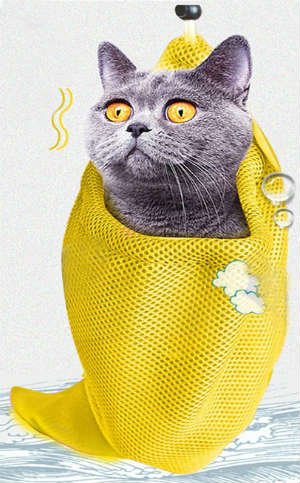 Mačke rijetko vole kupati se, rezati nokte, četkati zube ili provoditi druge higijenske postupke. Da bi lakše oprali kućnog ljubimca, kineski proizvođači stvorili su takvu originalnu vrećicu. Napravljen je od izdržljivog poliestera otpornog na vlagu, izgleda kao posebna mrežasta vrećica za perilice rublja. Rupe su predviđene za vrat, prednje i stražnje noge, tako da će ova torba pomoći držati mačku tijekom rezanja noktiju. Također je prikladan za liječenje, na primjer, ako želite dati vašeg ljubimca injekciju.