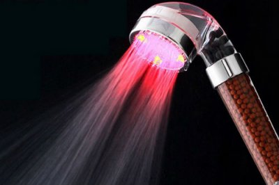 Ovaj originalni uređaj može preobraziti čak i dosadnu kupaonicu. Mlaznica je pričvršćena izravno na crijevo za tuš, ima višebojne LED diode. U asortimanu prodavatelja postoje dva različita modela: prvi se sastoji od sedam različitih žarulja, ne mijenjaju boju. Druga mlaznica je jednobojna, ali njezina boja će ovisiti o temperaturi vode. Ako uključite vruću slavinu, crvene LED diode će zasvijetliti, ako je temperatura mlaza od 26 ° do 35 ° - plava. Da biste vidjeli zeleno svjetlo, morat ćete plivati u ledenoj vodi (0-25 °).