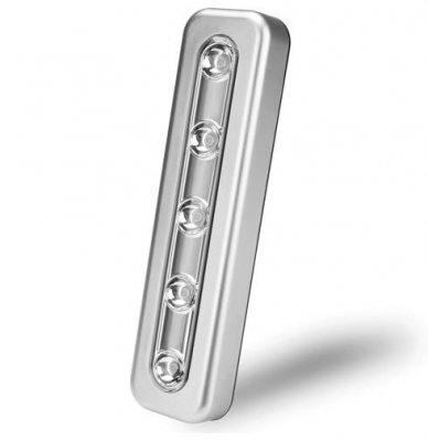 U svakoj kući ima mnogo tamnih uglova koje bi bilo lijepo istaknuti. Za izvođenje mrežne rasvjete u ormaru ili ladicama komode nije praktično, u tom slučaju spašava se autonomna LED žarulja. Ovdje se nalazi pet dioda ukupne snage 50 lumena. To je sasvim dovoljno za osvjetljavanje malog prostora. Svjetiljka je učvršćena pomoću ljepljive trake postavljene na stražnjoj strani kućišta. Nažalost, to je jednokratno, ali nakon uklanjanja ne ostavlja tragove na površini.