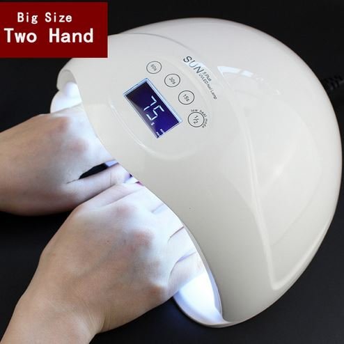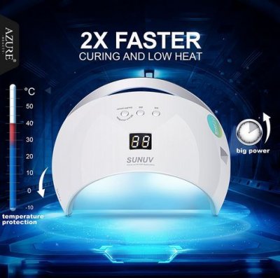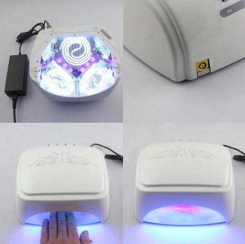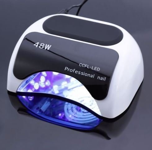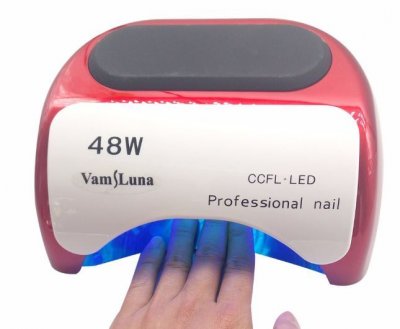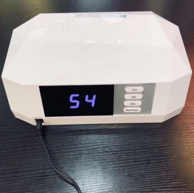 Mala 48 W žarulja s vrlo lijepim dizajnom. Ovaj sušač za nokte voljen je za širok raspon svjetlosnih valova. Ovdje je instalirana žarulja CCFL na unutrašnjoj strani poklopca i LED diode na bočnim stranama. U ovom modelu nema "slijepih zona". Zrake dosežu sve uglove, a reflektirajuća površina pojačava njihovo djelovanje. Ovo je jeftino. Ako odlučite kupiti sličnu lampu u našim trgovinama, to će koštati više.