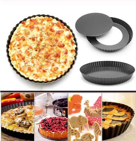 Za želatinaste kolače, pizzu i kolače s figuriranim rubom, ovaj metalni kalup s keramičkim non-stick premazom bio bi najbolji izbor. Visoka izdržljivost, najbolja nepropusnost i odličan izgled su ono što kupci AliEkspress web-mjesta cijene. Odvojivo dno omogućuje brzo uklanjanje kolača i pita. Kolači u njemu ispadaju lijepi. Promjer dna je 22,5 cm, a briga o proizvodu je jednostavna, ali oblik se ne može očistiti metalnom vunom i četkama, bolje je odbiti sredstva za čišćenje s abrazivnim česticama.