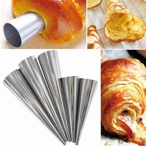 Za pečenje kolača i kolača u obliku cijevi i kroasana takvi su čunjići korisni. Na AliExpress-u su prikazane u četiri veličine. Izrađeni su od čelika, lako se mogu podnijeti intenzivnoj uporabi i mogu biti izloženi visokim temperaturama. Kvaliteta rubova je jedna od najboljih. Tijesto se ne lijepi za oblike. Uz pomoć tih čunjeva možete pripremiti ne samo kolače, nego i lijepe rogove za posluživanje sladoleda. Cijena na web stranici je naznačena za 5 kalupa, veličina se može odabrati.