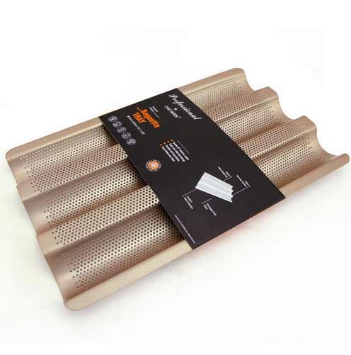 U takvim perforiranim oblicima posebno su uspješni bagueti i francuske peciva. Pogodni su za testiranje tijesta i pečenje pekarskih proizvoda. Metal se brzo zagrijava i dobro provodi toplinu, tako da se bageti vrlo brzo pripremaju. Važno je samo pridržavati se tehnologije. Sama forma se sastoji od tri ćelije širine oko 5 cm, ukupne veličine 27x24 cm. Kupci stranice AliEkspress hvale ovaj model u recenzijama. Oni vole njegovu visoku kvalitetu i najbolju funkcionalnost.
