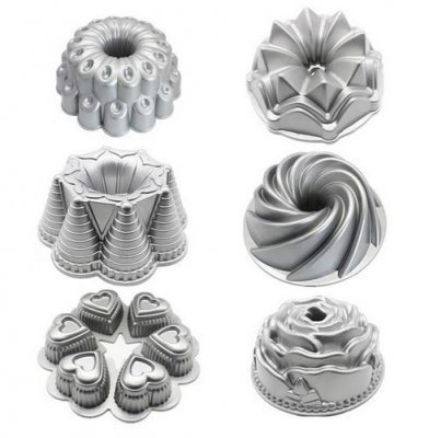 Kolači su veliki i porcionirani, a jela za pečenje razlikuju se po veličini. Mogu biti klasični i vrlo neobični, izvorni. Jednostavni pravokutni oblici pogodni su i za pečenje domaćeg kruha i pečenja. Na slici se također mogu sipati želei, pjene i drugi deserti koji ne zahtijevaju pečenje.
