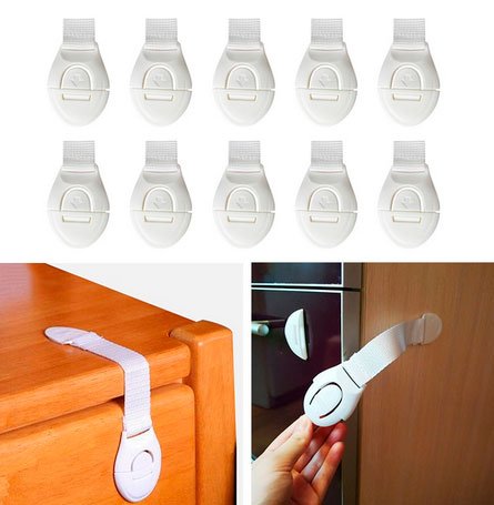 Čim se dijete počne samostalno kretati po kući, mame i tate suočavaju se s zadatkom da osiguraju bebu, zadržavajući sadržaj ladica i noćnih ormarića. Takve brave-stege će biti korisne. Ovaj proizvod je jeftin, ali vrlo praktičan. Prodavatelj na Aliexpressu ima brave u dvije verzije - brave s fleksibilnim tekstilnim trakama i zasunima u cijelosti od plastike. Sve se lijepe na vrata pomoću dvostrane trake.