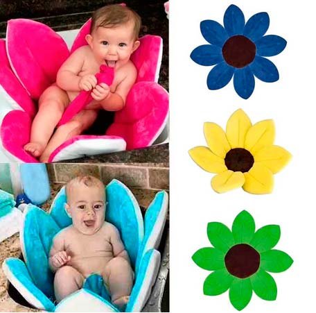 Višenamjenski meki cvijet može se koristiti kao obloga za kupanje, kao i običan jastučić za djecu. Izbor prodavatelja nudi 8 boja. Postoje otirači za dječake i djevojčice. S njima se dijete može okupati čak iu umivaoniku, bez straha da ne povrijedite dijete. Boja tepiha je svijetla, gornji sloj nalikuje baršunastoj tkanini. Brzo se suši, izgleda lijepo. Roditelji ga često kupuju za foto-snimke - slatke i praktične.