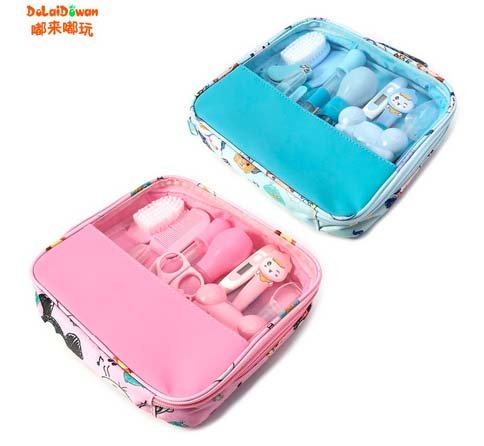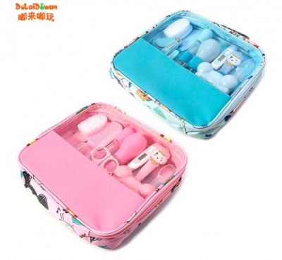 Mali kovčeg, ušiven od perivog materijala, ispunjen najkorisnijim dječjim priborom. Unutra se nalazi 13 predmeta. Postoje vrlo jake škare, digitalni termometar, termometar za vodu, čišći za uši s pozadinskim osvjetljenjem, češljevi, četke, masažer gume, pipeta, pila za nokte, škare za nokte i 2 pinceta. Električni uređaji rade dobro, i oni dolaze s Aliexpress, oni su s baterijama. Nema mirisa, svi silikonski dijelovi su mekani i fleksibilni. Šavovi vrećice su jednaki, čak ni niti se ne mogu nigdje zalijepiti. Vrlo pristojna ponuda.