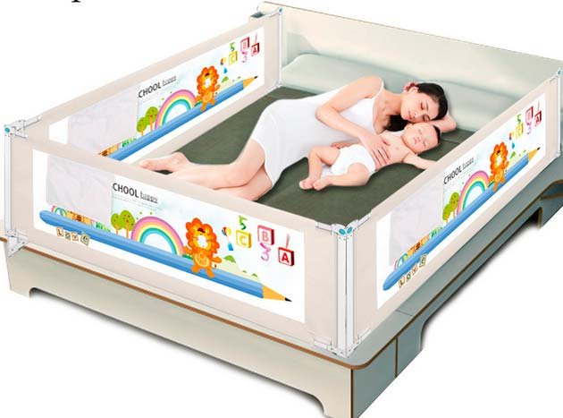 To je iznimno korisna stvar za mame koje spavaju s djetetom, ili ostavljaju bebu samu u krevetu za odrasle. Barijera će zaštititi dijete od pada i natjerati roditelje da mirno spavaju. Limiter je jednostavan za montažu, prikladan za bilo koji krevet. Ako je potrebno, strane se brzo preklapaju. Okvir je izrađen od laganog i izdržljivog metala, a tkanina na rubovima je gusta "kišna kabanica", srednji dio je izrađen od prozirne mreže.