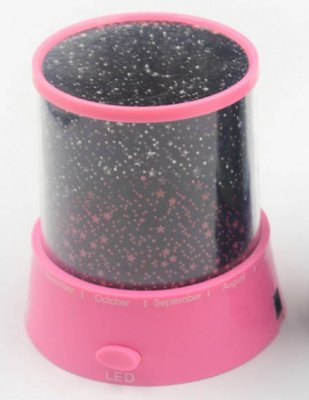 Ovo noćno svjetlo cilindričnog oblika savršeno će se uklopiti u svaki interijer. Slika je projicirana sa svih strana uređaja, slika mjeseca i zvjezdanog neba je zalijepljena na vrhu. Unutar svjetiljke nalaze se diode od tri boje, koje se mogu uključiti istovremeno ili u zavojima. Svjetlina svjetla je podesiva, postoje tri načina. Različiti filmovi za projekciju su uključeni u paket, oni se mogu mijenjati. Na primjer, postoji posebna ploča s čestitkama za rođendan, ribu, zviježđa i planete. Djeca će biti oduševljena šarenim slikama, a njima će se svidjeti i odrasli. Crteži su oštri, gotovo ne zamagljeni čak i na velikoj udaljenosti od zidova i stropa.