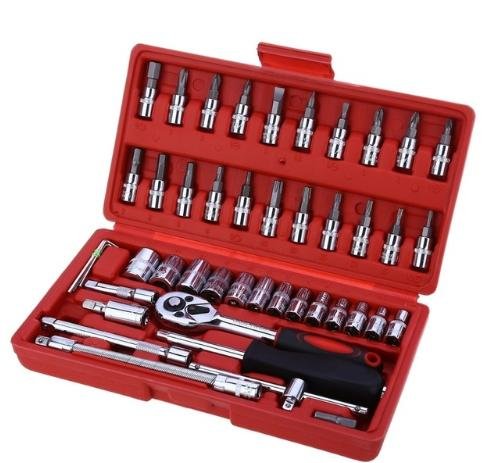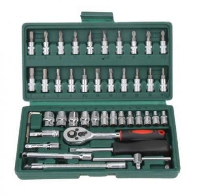 Svi alati smješteni su u relativno malom kovčegu i to je glavna prednost ovog pribora. Ne treba izdvajati puno prostora kod kuće ili u prtljažniku automobila, iako postoji sve što je potrebno za manje popravke. Postoji čak i niz šesterokuta, premda ih ne toliko. Osim toga, komplet sadrži standardnu ručku bez ratcheta, kao i fleksibilan adapter koji vam omogućuje da odvrnete vijke ili matice u teško dostupnim mjestima. Da, takav set s AliExpress je teško nazvati profesionalno, ali za osobnu upotrebu jednostavno je neophodno, a cijena se svidi.