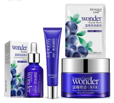 BIOAQUA je jedna od najpopularnijih kozmetičkih tvrtki na AliExpressu. Nije iznenađujuće da su proizvodi ove marke uspjeli napraviti kompletan set. Sadrži 6 proizvoda: kreme za lice i oči, serum i tri maske. Glavni aktivni sastojak je ekstrakt borovnice. Briga se i za najosjetljiviju kožu, njeguje, vlaži i tonizira. Također sadrži glicerin, avokado, trehalozu i zob.
