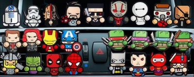 Osvježivači zraka MR TEA Cartoon Style - pravi je pronalazak za ljubitelje popularnih franšiza. To su jeftini, ali spektakularni setovi naljepnica sa slikom vaših omiljenih likova, koji se mogu postaviti na rešetku deflektora. Izvanredna je činjenica da jedan set sadrži pet ili sedam naljepnica, ovisno o odabranoj seriji. Od sada, svaki fan Marvela može prepoznati miris Black Widow i mehanički oklop Tonyja Starka! Vrlo dobra kupnja, pogotovo s obzirom na ukupan broj artikala.