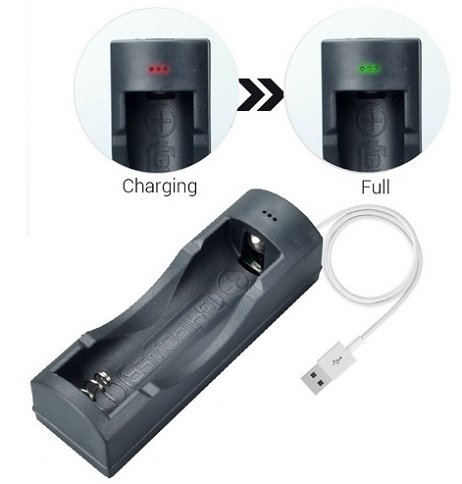 VONTAR Single Charger savršen je za 3,7 V litij-ionske baterije (veličina 26650, 18650, 18500 itd.). Naprava je opremljena malim zaslonom koji prikazuje informacije o naponu, postotku punjenja i korištenoj jakosti struje (dostupne su dvije opcije: 0,5 A i 1 A). Nakon što se baterija u potpunosti napuni, uređaj automatski zaustavlja postupak, što vam omogućuje maksimalno učinkovito korištenje baterija. Vanjski izlaz uređaja je Micro USB priključak, tako da je za rad potreban dodatni mrežni prilagodnik (možete ga uzeti s gotovo bilo kojeg Android telefona na 5V / 1A). Nedostatak jedinstvenog punjača je nazvati samo uski raspon kompatibilnosti za njegovu cijenu (kao što je već spomenuto, radi samo s 3.7 V baterijama).