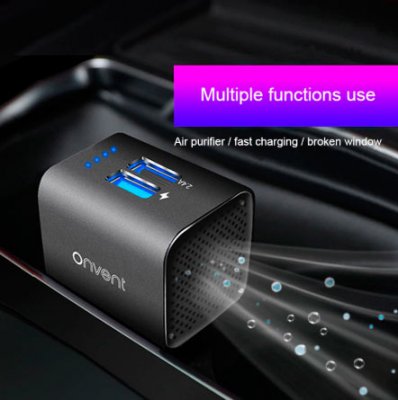 Ako vaš automobil ima malo mjesta za punjače, pročišćivače zraka i druge korisne gizmose, obratite pozornost na ovaj ionizator. To će očistiti zrak, ukloniti mirise i moći će napuniti gadgete. Kutija za opremu ima 2 USB priključka za brzo punjenje. Sam ionizator je mali, pogodan za većinu modela automobila, povezan je s ugrađenom mrežom kroz upaljač za cigarete.