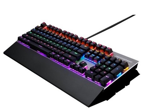 Proračunska mini-mehanička tipkovnica za one koji žele igrati na računalu ili pametnom telefonu. ne dobivam zbunjenost u ključevima. Ugodan dizajn čine ugodna na dodir ABS-plastike i RGB-pozadinsko osvjetljenje na periferiji cijelog tijela. Kao i mnogi drugi modeli, tu je i improvizirani naslon za ruke. Podržava rad sa svim postojećim operativnim sustavima. Klikovi na resurse - samo 20 milijuna.