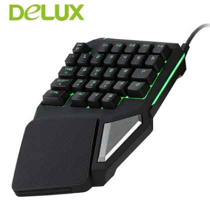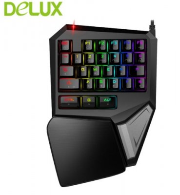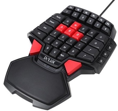 Kao što možete pretpostaviti po izgledu prikazanog gadgeta, tipkovnica je dizajnirana isključivo za upravljanje jednom rukom. Ideja je više nego jednostavna - ako u većini konkurentnih igara (gdje su važna brzina i praktičnost periferije) igrači koriste samo mali dio gumba, zašto onda ne bi stvorili tipkovnicu sa pravim ključevima, odbacujući sve ostale. Istodobno, nekoliko ptica s jednim kamenom je ubijeno: vjerojatnost slučajnog pogrešnog klikanja je smanjena, ergonomija uređaja je optimizirana izravno za zadatke igre (programeri moraju prilagoditi modele pune veličine za normalan rad), a sam uređaj zauzima puno manje prostora. Delux T9 PRO je tipičan predstavnik klase takvih tipkovnica s udobnom rukom i brzim odgovorom na pritisak. Proizvođač nije zaboravio pozadinsko osvjetljenje (moguće je ručno podesiti i opće i pojedinačne tipke).